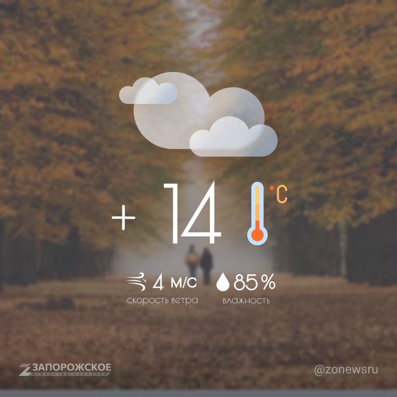 Сегодня в регионе сохраняется пасмурная погода: в Мелитополе, Энергодаре и Каменке-Днепровской +14°C, в Токмаке +13°C, а в Бердянске +9°C.Смотрите За!ТВ в Telegram и ВК