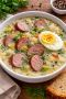 сepoe пальто,синие джинсы, черные туфли, вязаная белая шапка.