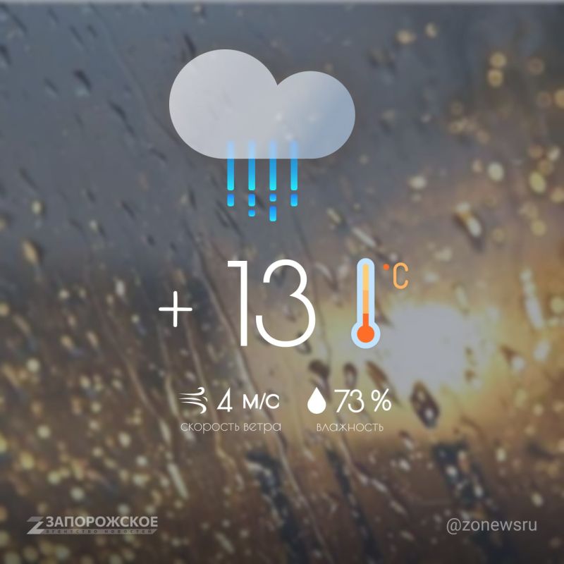 Сегодня в регионе дождливая и прохладная погода: в Мелитополе +14°C, в Бердянске +13°C, а в Энергодаре, Токмаке и Каменке-Днепровской +10°C с дождем. Возьмите зонт и наденьте теплую непромокаемую одежду — на улице сыро.Смотрите За!ТВ в Telegram и...