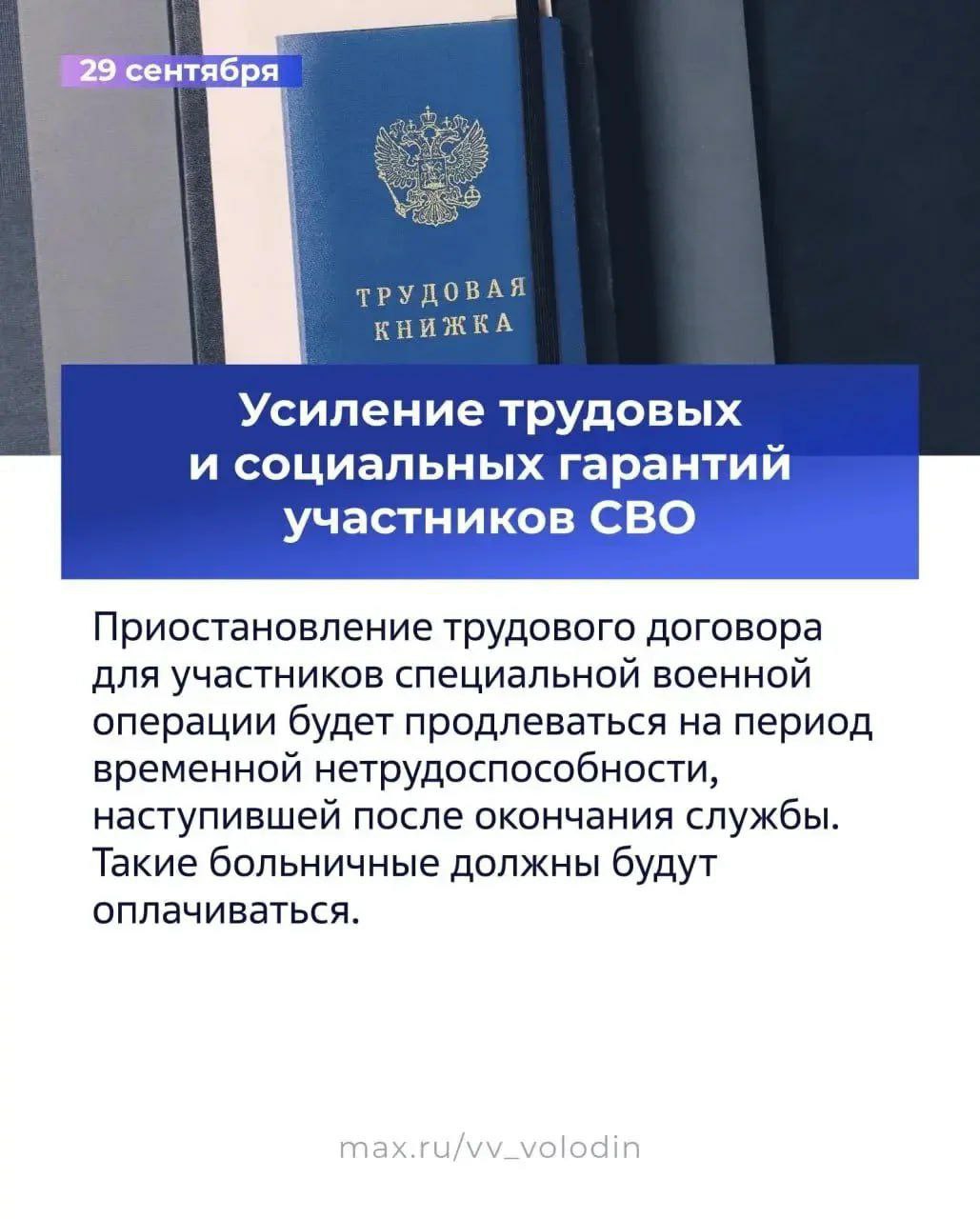 В этом месяце начинают действовать важные поправки, направленные на поддержку участников специальной военной операции. Теперь за военнослужащими, завершившими службу, гарантированно сохраняется их рабочее место (эта норма действует с конца сентября). Кроме того, для добровольцев упростили процедуру присвоения воинских званий - теперь это возможно без прохождения сборов.