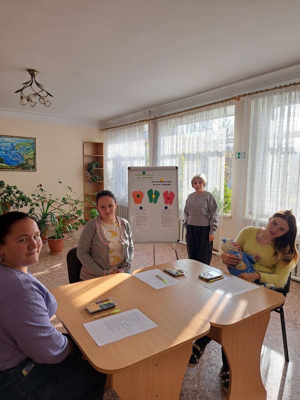 14.11.2025 г. в ГБУ "Комплексный центр социального обслуживания населения" Министерства труда и социальной политики Запорожской области в отделении помощи матерям с детьми до 3-х лет обособленного подразделения г. Бердянск психолог в социальной сфере провёл тренинг на тему: "Толерантность как принцип взаимодействия между людьми".