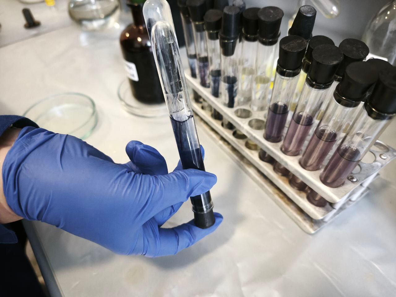 На фото - определение диастазного числа в мёде в межрайонной ветеринарной лаборатории филиала ГБУ Запорожской области "Ветеринарный центр" в городе Бердянске и Бердянском районе