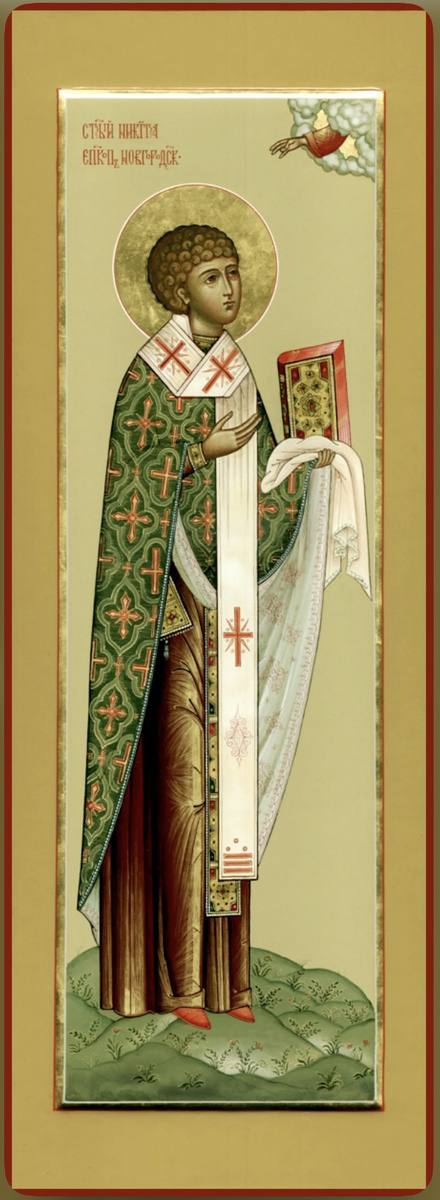 Никита родился в Киеве в XI веке. Он с раннего детства тяготел к духовной жизни и принял постриг в ранней юности в Киево-Печерской лавре. При этом, несмотря на то, что старшие монахи его в том не поддержали, он почти сразу стал затворником. Игумен Никон предвидел, какие искушения ждут юношу, и так и произошло. Во время молитвы он принял дьявола за ангела и дал ему овладеть собой. Он не только сам перестал молиться, считая, что так велит ангел, но и начал пророчествовать другим людям, не ощущая, что это все он делает по наущению дьявола. Все больше людей приходили к Никите и ждали его слов. Пришлось его духовному наставнику изгонять поселившегося в его душе дьявола. Он настолько очистился, что даже разучился читать. Но потом быстро вернул свои знания. Позже он, ведя после той истории самую благочестивую жизнь, был избран епископом Новгородским. При нем были построены многие новые храмы. Тогда же Господь удостоил его даром чудотворения. Он мог вызвать дождь в засуху и потушить пожар. Потому его прозвали Пожарником. Он мирно отошел к Господу и был похоронен в новгородском Софийском соборе, где его мощи хранятся и сейчас, продолжая совершать чудеса исцелений.