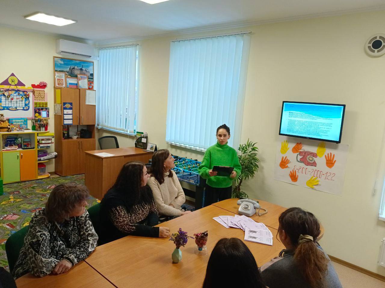 13.02.2026 г. в ГБУ "Комплексный центр социального обслуживания населения» Министерства труда и социальной политики Запорожской области, в отделении комплексной реабилитации детей-инвалидов Обособленного подразделения г.Бердянск прошла лекция для родителей, посвященная Неделе информирования о детском телефоне доверия.