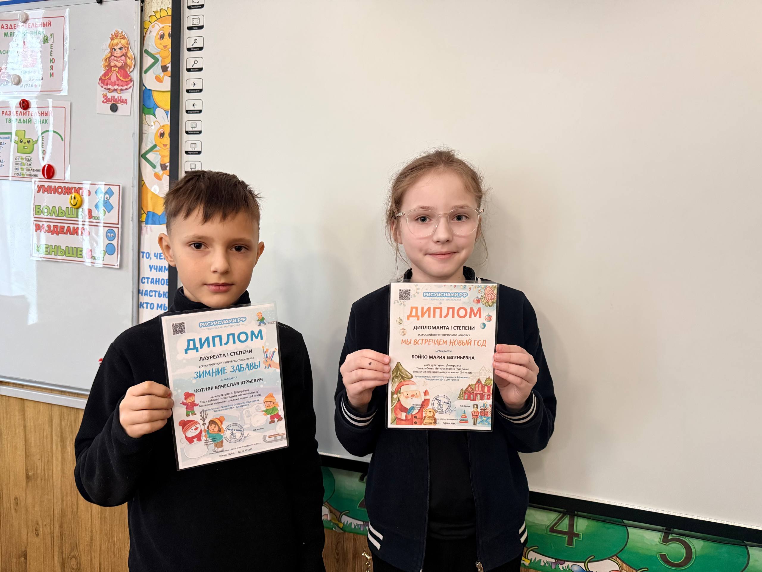 Бойко Мария стала дипломантом I степени во Всероссийском конкурсе творчества «Мы встречаем Новый год», а Котляр Вячеслав удостоился звания лауреата I степени на Всероссийском конкурсе «Зимние забавы».