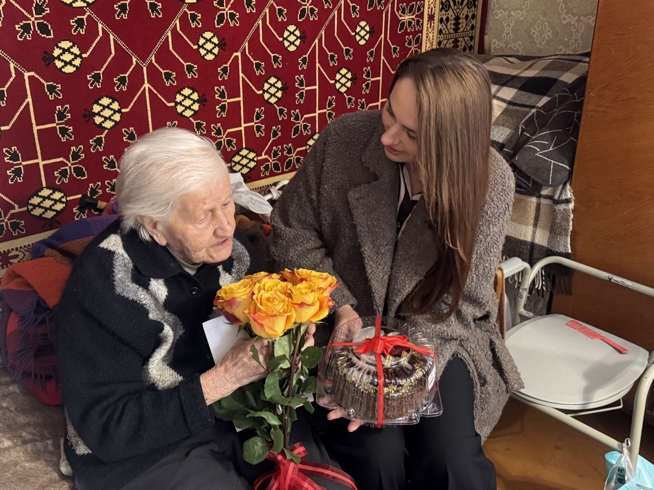 Мария Солодовникова, которой исполнилось 103 года, передали персональное поздравление от Президента Российской Федерации Владимира Путина, букет цветов, подарки и праздничный торт «Сладости детства». Также поздравления, сладости и цветы были вручены Серафиме Ерденко, которой исполнилось 95 лет.