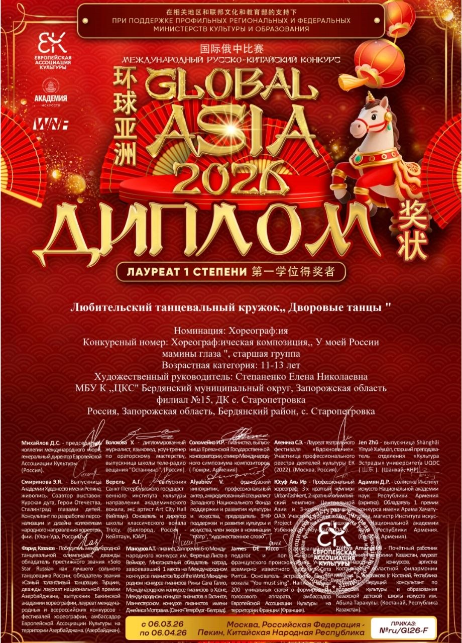 Кружковцы Старопетровского ДК завоевали первые места на фестивале «ГЛОБАЛ АЗИЯ2026»
